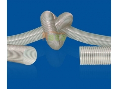 聚氨酯钢丝风管,TPU大口径钢丝风管的内壁光滑,附有弹性,流动性优越,可观察管内介质流动,抗微生物和水解;无毒无味,符合食品级标准高耐磨,耐压性能;可排静电,通过螺旋钢丝接地。