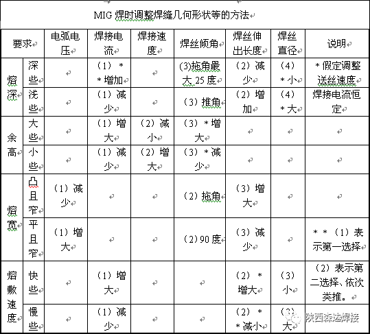 在用户处发现焊缝出了问题后,电流电压合适的情况下,可按下列图解提示进行调整: