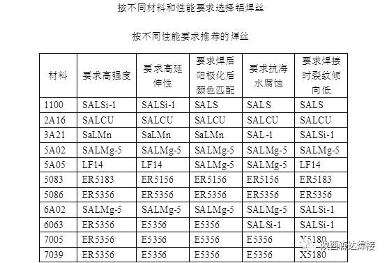 a)纯铝及合金、铝锰合金等用铝硅焊丝:4043焊丝(311焊丝),焊丝直径根据工件大小厚薄一般选择1.0、1.2、1.6三种。