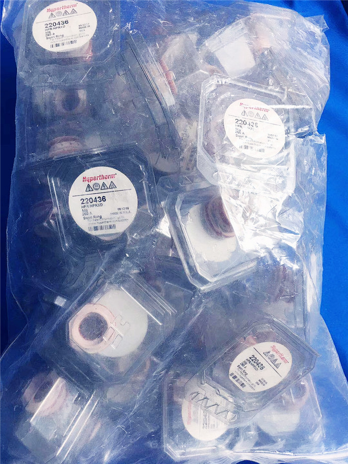 美国海宝XPR数控等离子切割机依靠优异性能在我国得到广泛使用,XPR常采用气体是N2/H2O在电流下,配套的等离子切割机配件是电极420356,喷嘴(喷咀,割嘴)420315,保护帽(又叫屏蔽罩、屏蔽帽)420595,涡流环420598,喷嘴固定帽(内保护帽,内固定罩)420365,外固定罩(大外帽、固定盖)420200,水管420368,常规损耗较多的是电极420356喷嘴420315保护帽420595随着技术不断成熟,考虑生产切割成本,我公司多数易损件主推优质替代品,能够达到原装的寿命与切割质量,对于部分技术待成熟的零件推荐使用原装,对于有专利保护的耗材,推荐使用海宝原装正品,我公司均有销售。价格都特实惠喔,欢迎来电,微Xin同号。配置的易损件是有色金属的数控切割金属板材。